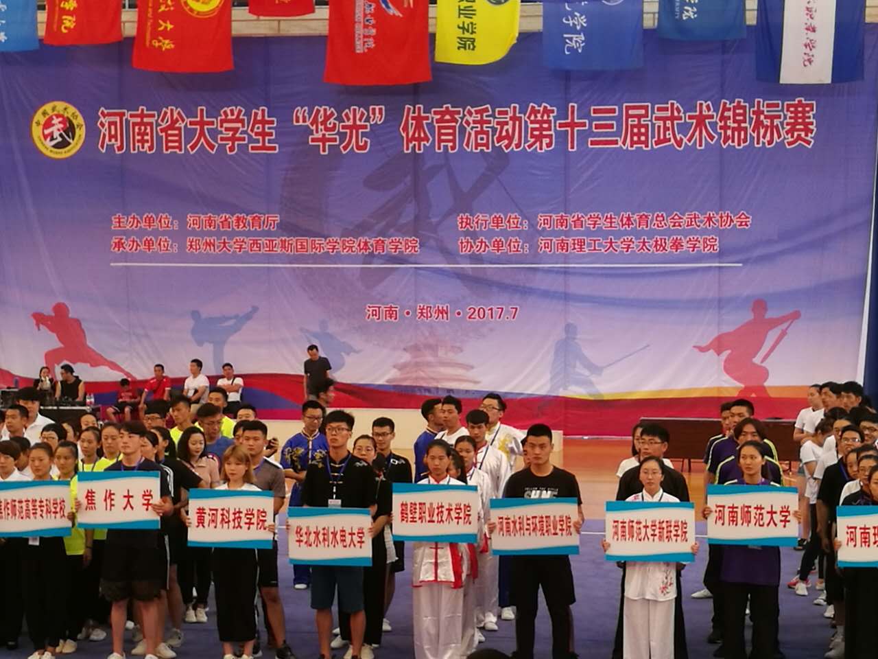 7月3日上午,由河南省教育厅主办,郑州大学西亚斯国际学院体育学院承办的河南省大学生“华光”体育活动第十三届武术锦标赛在西亚斯学院综合体育馆隆重开幕!