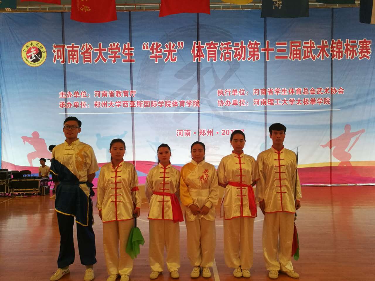 学院领导对本次比赛高度重视,为参赛队员做好训练和服务工作,参赛队员和指导教师克服训练时间短、训练强度大等困难,认真训练,积极备赛。在续延军、姚红艳老师的带领下,经过刻苦努力、拼搏,取得优异的成绩!续延军老师获得优秀教练员、李雪莹获得初级枪术第一名、李红获得优秀运动员,各单项获奖情况如下: